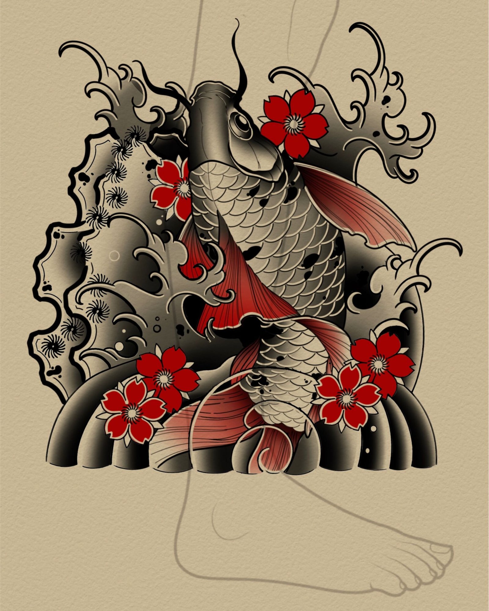 Your message (please include placement and elements. Eg. Fish with cherry blossoms on right arm)